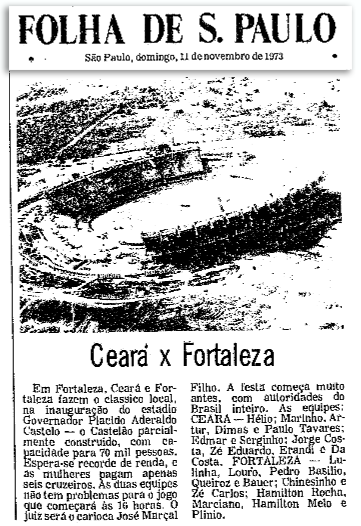 Em Fortaleza, em 1973, foi inaugurado o estádio Plácido Aderaldo Castelo, propriedade do Estado. Homenagem ao governador do CE pela ARENA entre 1966 a 1971. O estádio, que hoje foi reformado, é conhecido carinhosamente como "Castelão".