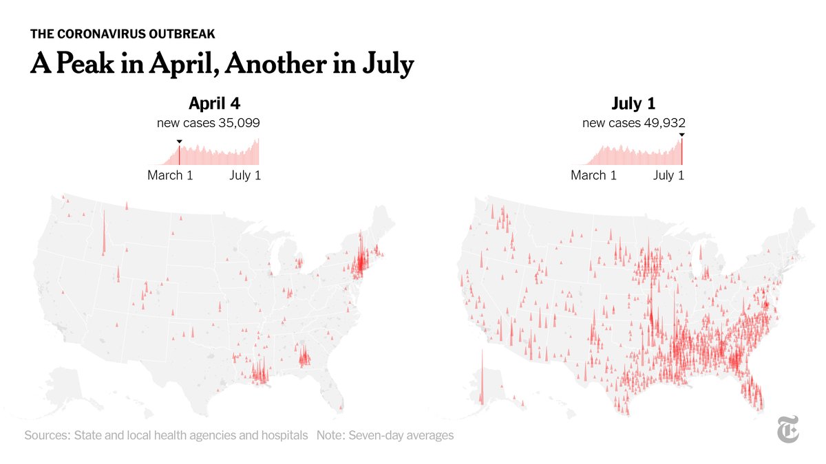 In early April, the New York City area had almost half of all new cases some days. But the current surge has left few counties untouched in much of the South. nyti.ms/31EUx9t