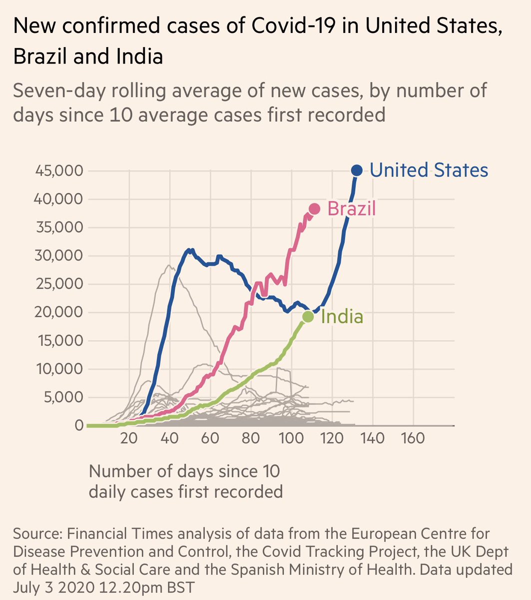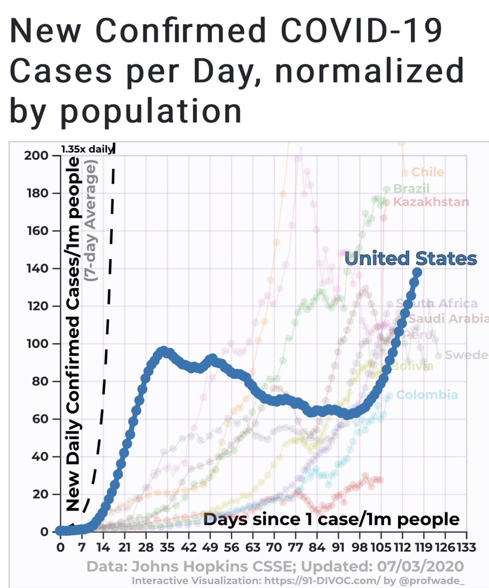 Normalizing to million population underestimates the severity of the epidemic in large countries. Ultimately it’s about the numerator: >50,000 new persons with COVID every day