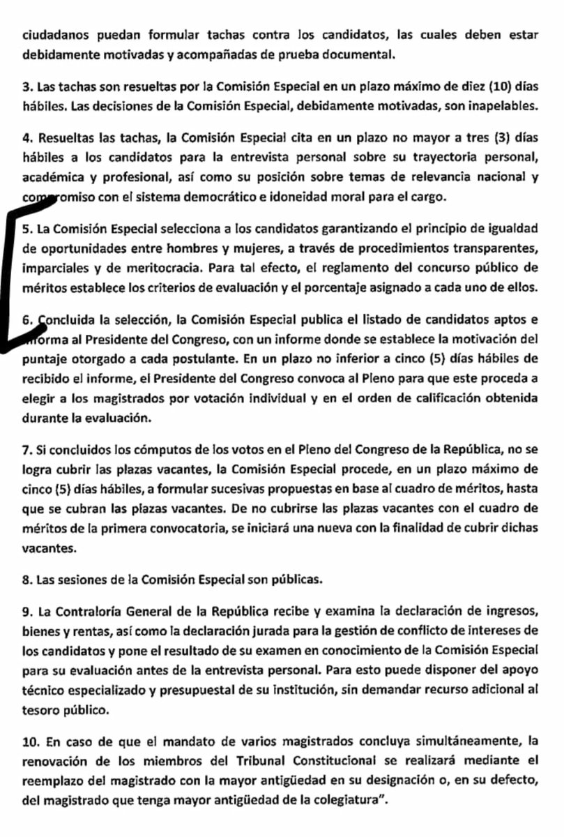 #Ahora Pleno suspendido. Cuando vuelva (4 pm), los congresistas votarán este texto sobre la elección por concurso de los miembros del TC.