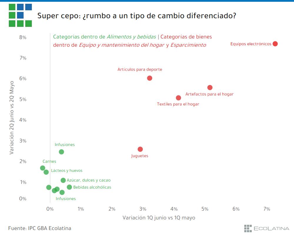 Para superar esta dinámica, el BCRA podía devaluar o ajustar más el cepo. Para evitar una aceleración de la inflación generalizada, eligió más cepo, obligando a muchas empresas a importar con USD propios. ¿El resultado? Más inflación en algunos rubros, pero estabilidad en otros.