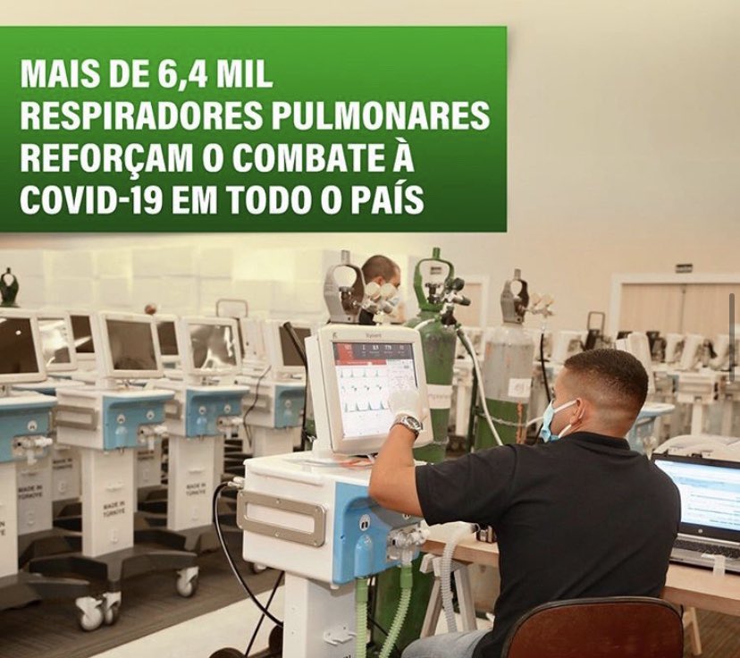 E- Reforço de 6.410 ventiladores pulmonares entregues pelo Governo Federal às redes de saúde de estados e municípios. 3.477 são ventiladores de UTI e 2.933 de transporte. RJ recebeu o maior número, com 814 respiradores; seguido por SP (766), PA (406) e MG (389). @minsaude