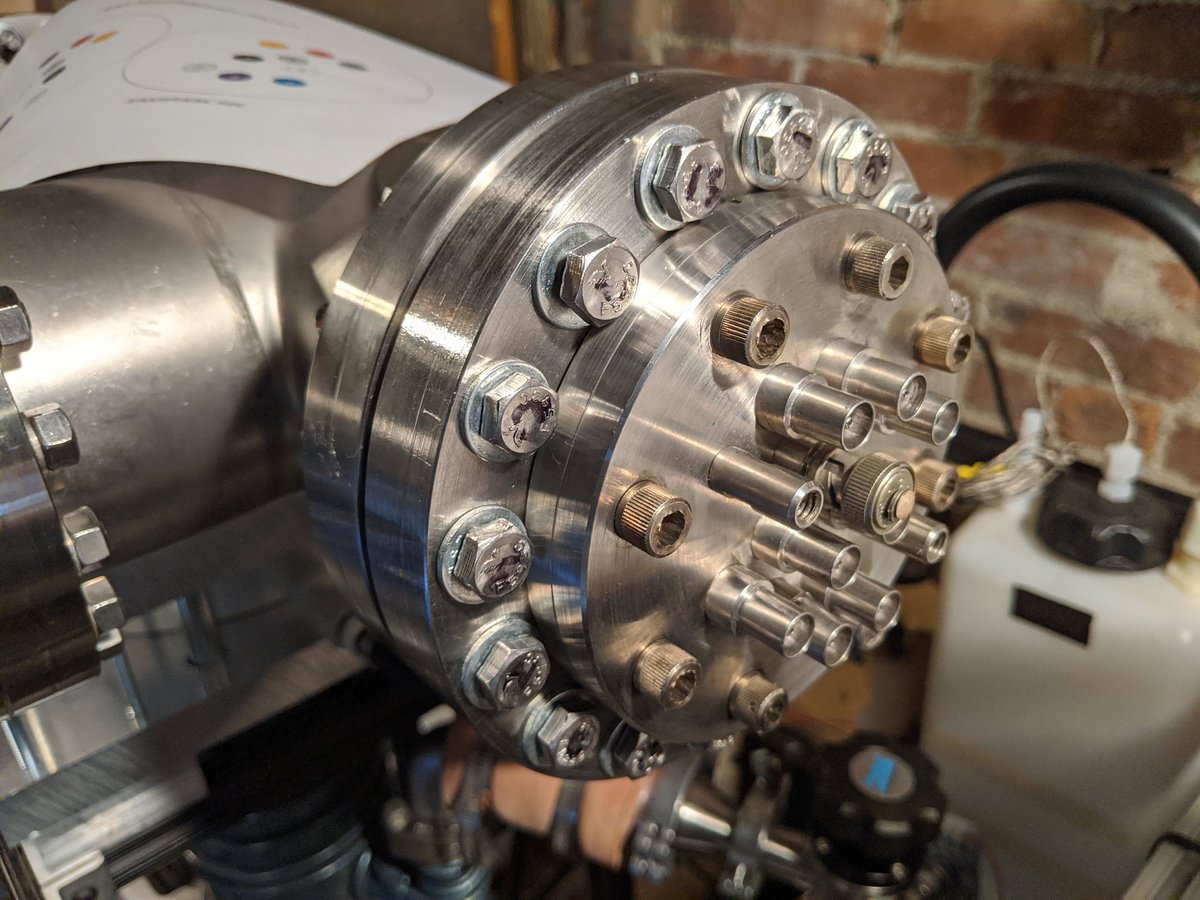 Instrumentation side is set up and ready to go. Due to the way the thruster is mounted and wired inside, I have to unbolt both flanges to access the wire for the feedthrough connection. On to the thruster side!