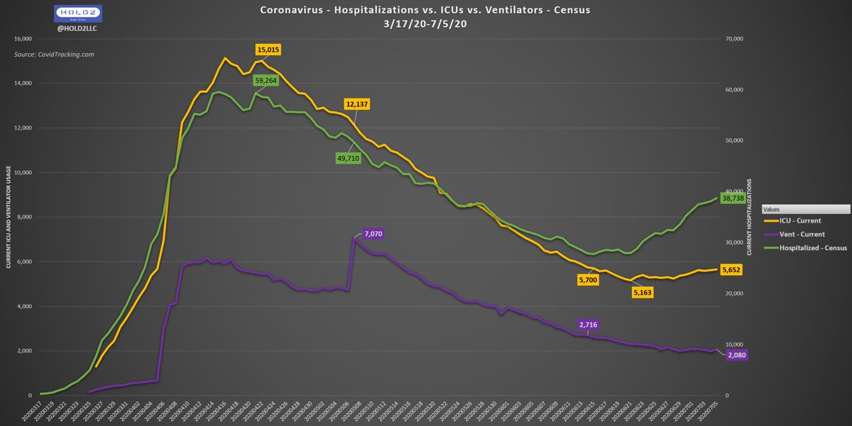 ***Watch ICUs/Vents relative to Hosps. Many hosps can be coded as C19 without COVID-Like Illness (CLI)