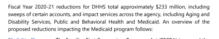 $233 million from DHHS, including a 6% reduction in Medicaid reimbursement rates.