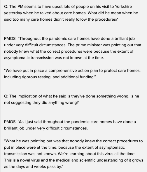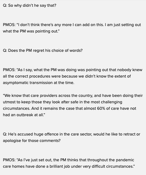 PM spokesman: “He was pointing out that nobody knew what the correct procedures were at the time...because the extent of asymptomatic transmission was not known."