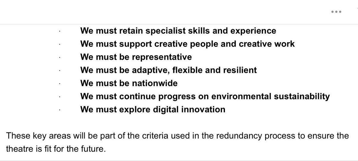 Redundancies during this time are regrettably unavoidable, but what is the National Theatre doing to put in place systemic change in order to increase diversity amongst its staff? Should the National Theatre be allowed to retain NPO status otherwise?