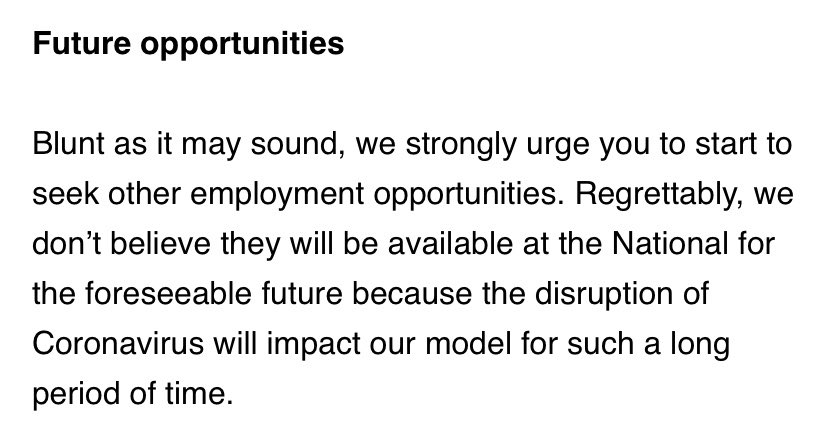 A sad and angry thread: The National Theatre is terminating the contracts of all casual staff across their building on 31 August despite the news that the government have put together a £1.57B rescue package for the arts.