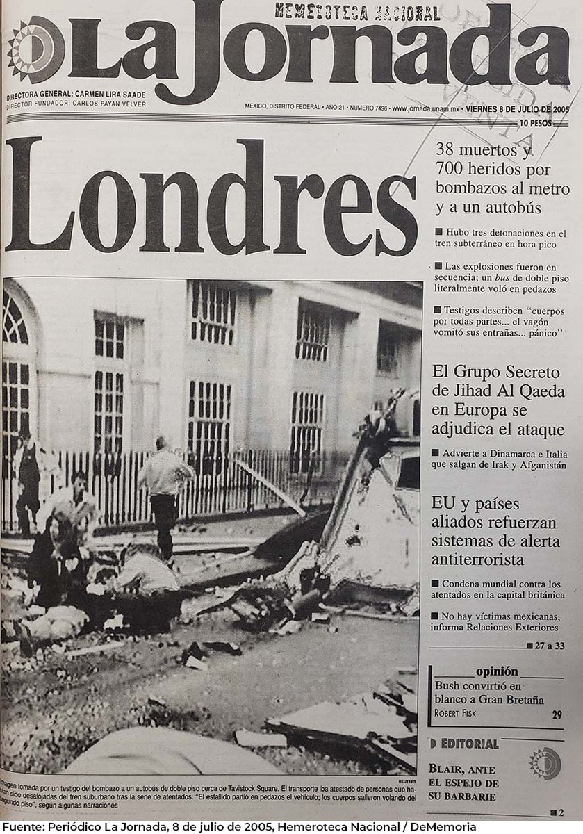 📰 Y antes de que concluyera aquel terrible jueves, la BBC informó que una organización extremista relacionada con #AlQaeda ya se había responsabilizado de las cuatro explosiones.