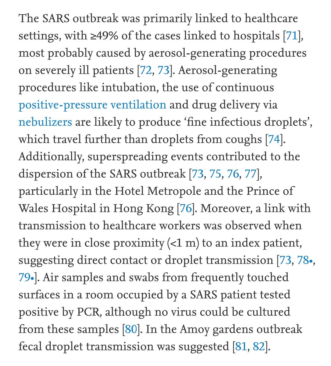 The majority of SARS transmissions was linked to hospitals (intubation and ventilation as prime suspects) and to superspreading events. Sounds familiar? Why did it not to our infectious disease experts? sciencedirect.com/science/articl…