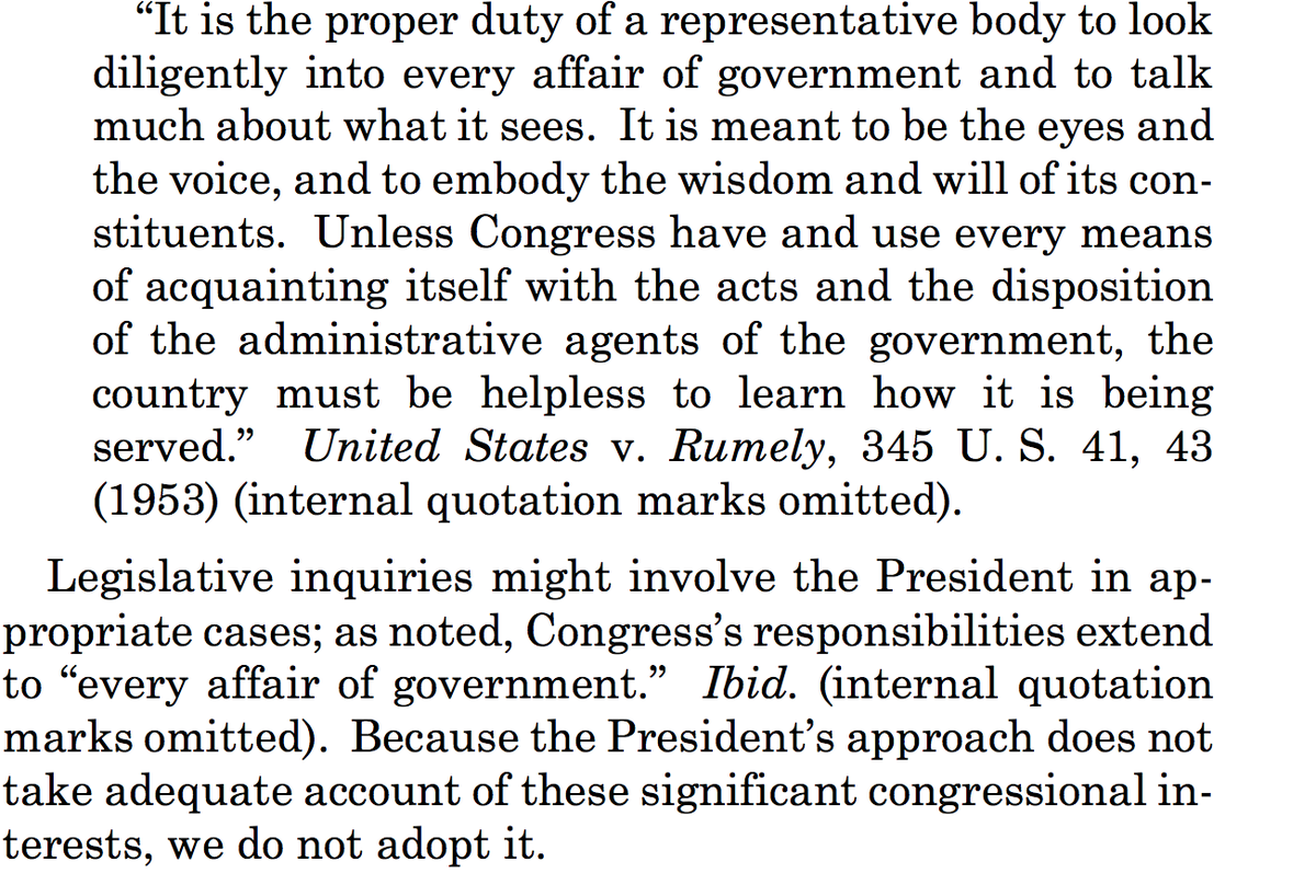 1. Judicious opinion by the CJ. The strongest statement ever by the Court in support of the traditional "accommodation" process between the political branches, which has been shot to smithereens in recent years. /1