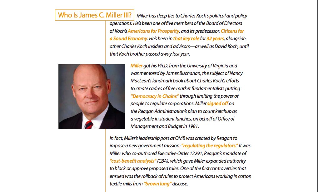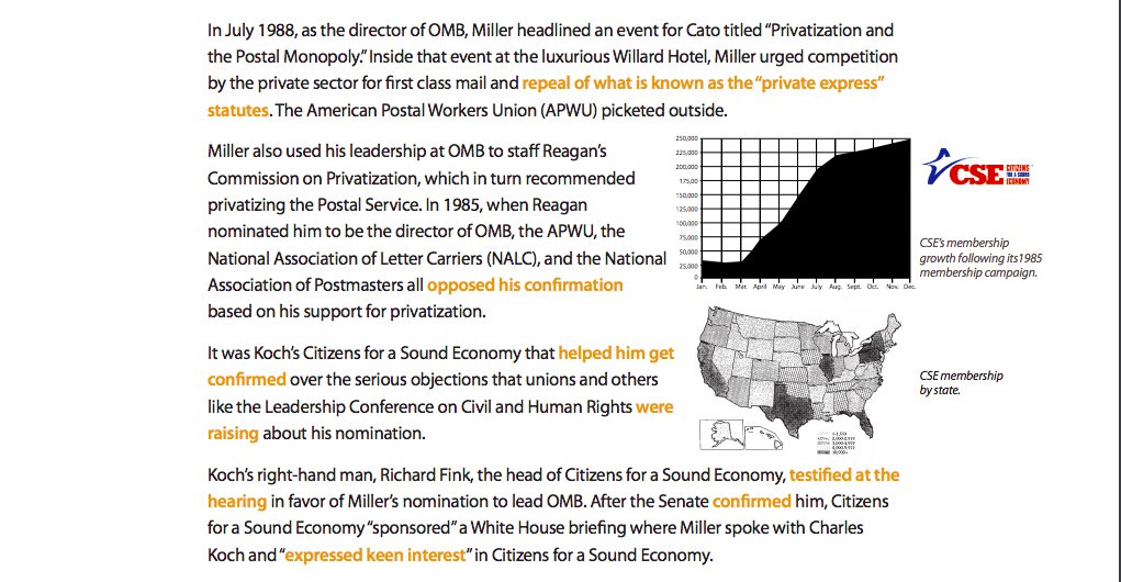 While at OMB, Miller worked w Koch's Cato Institute to attack the USPS.