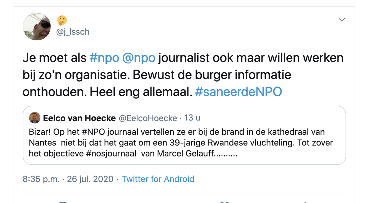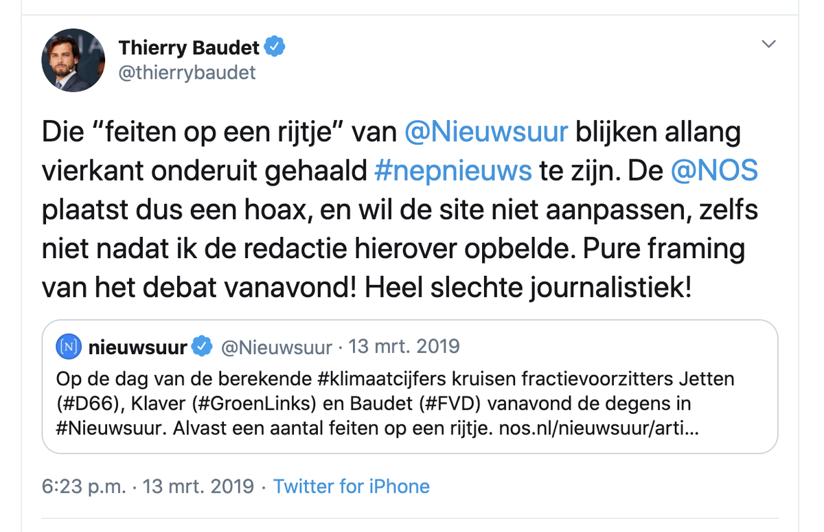 Krijgt eerst argwaan (NOS is Fake nieuws etc) over zich heen, dan vertrouwen maar verwijt dat de 'baas' het nieuws verdraaid.