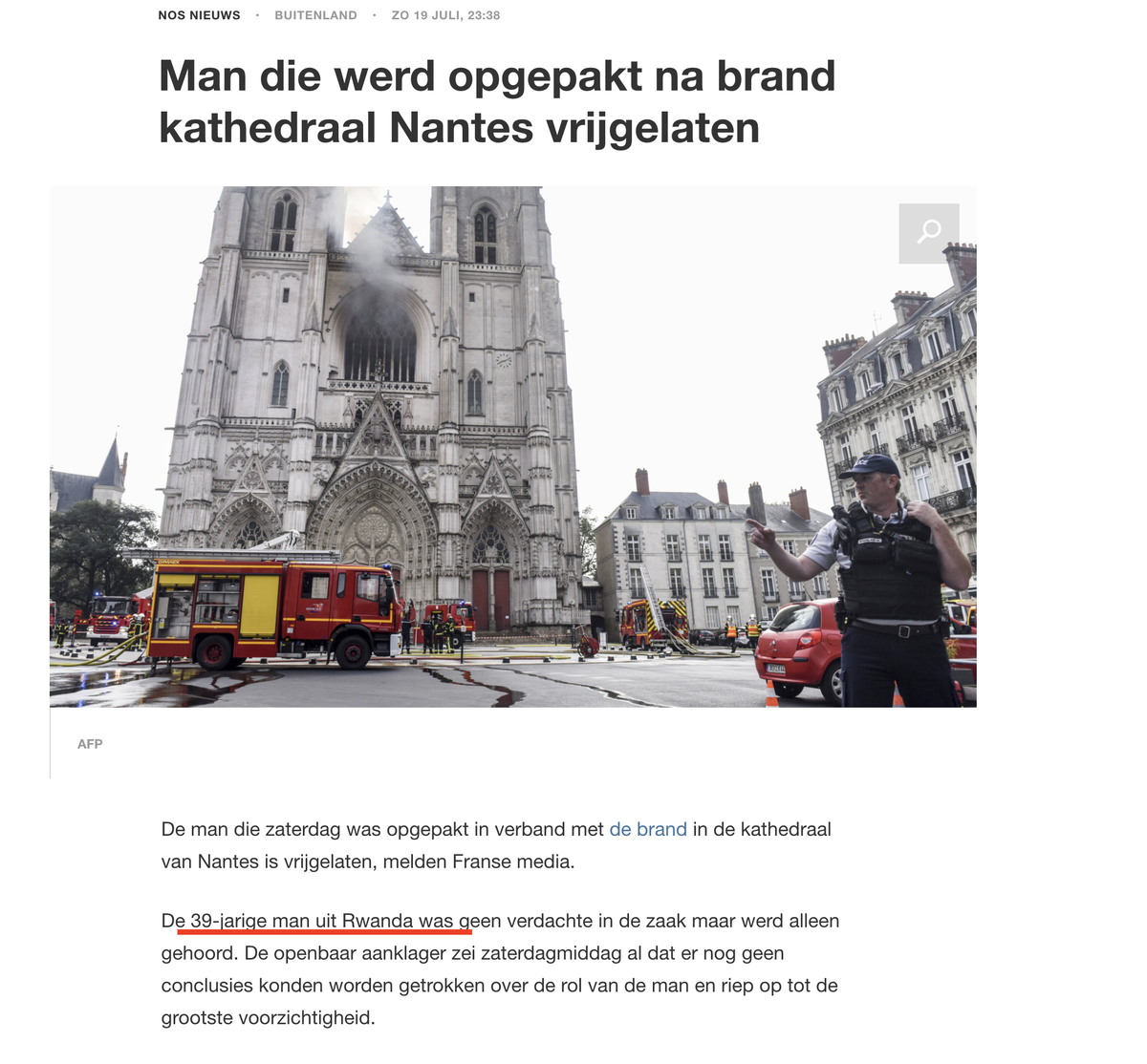 "De Franse politie heeft een Rwandese vluchteling aangehouden"