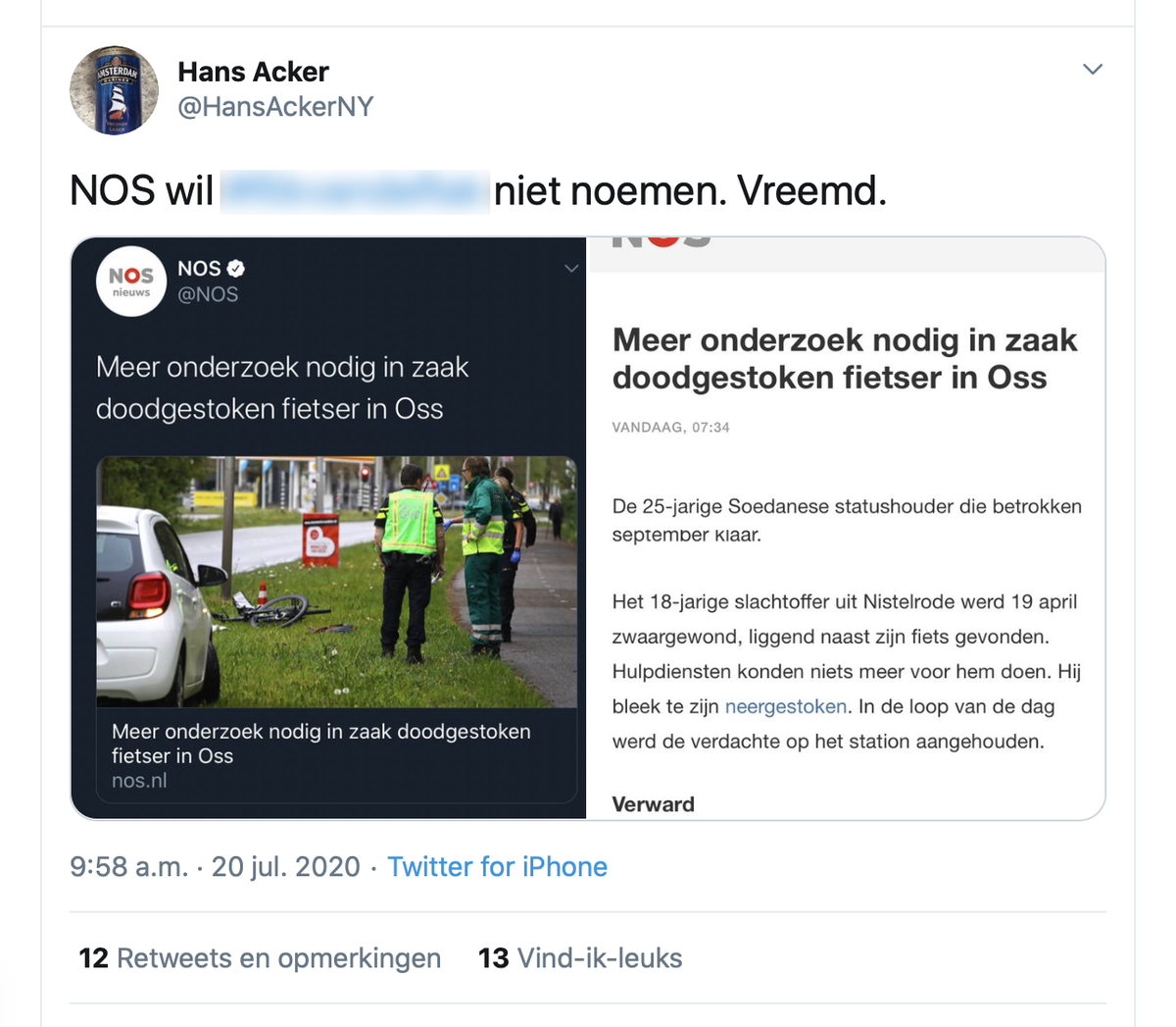Dan zou het raar zijn als de NOS / NLse media die naam niet gaat noemen.