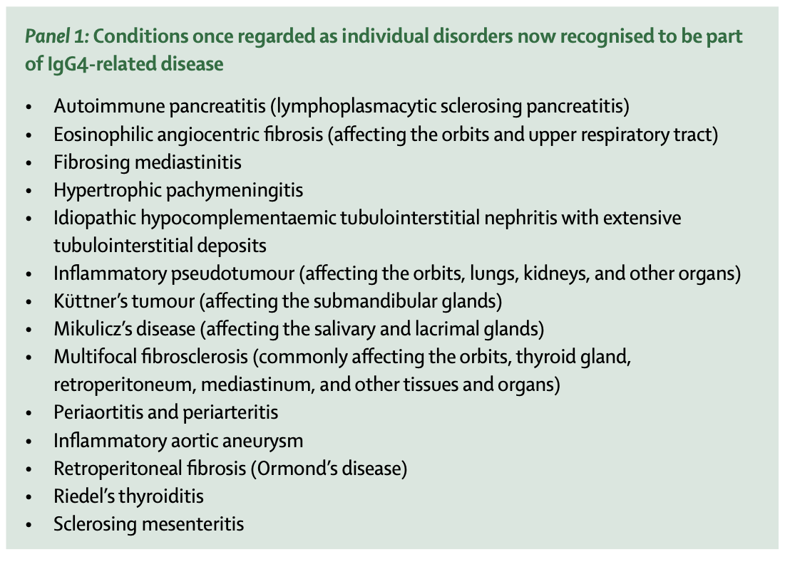 The patient's serum IgG4 was elevated 185.0 (2.4 - 121.0) mg/dL