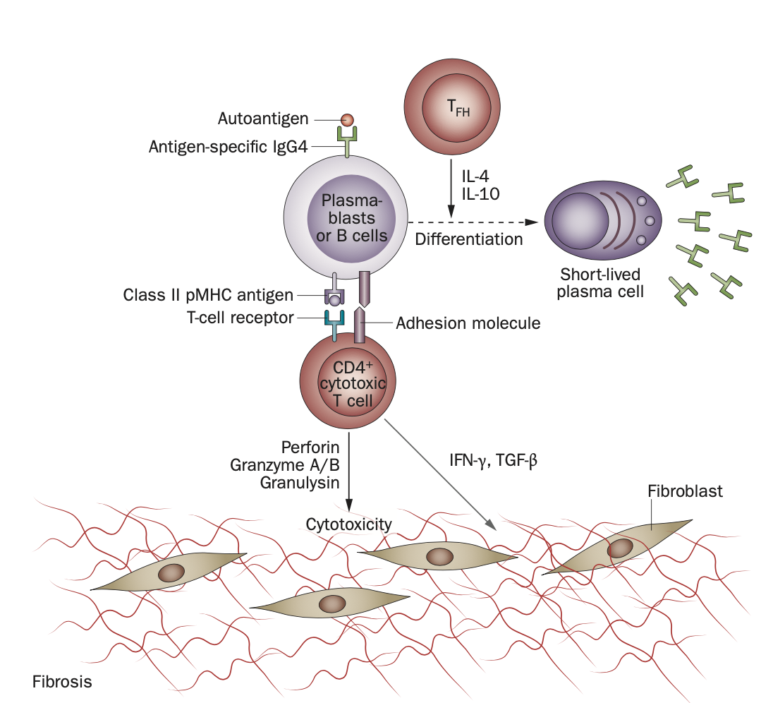 Fibrosis might be caused by activation of innate immune cells by polarized CD4+ T cells.