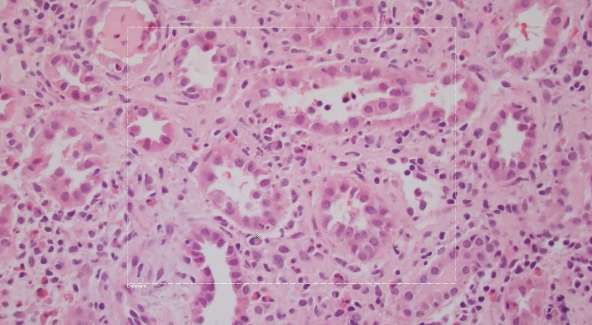 - Diffuse or multifocal lymphoplasmacytic interstitial infiltrate (eosinophils frequently present)