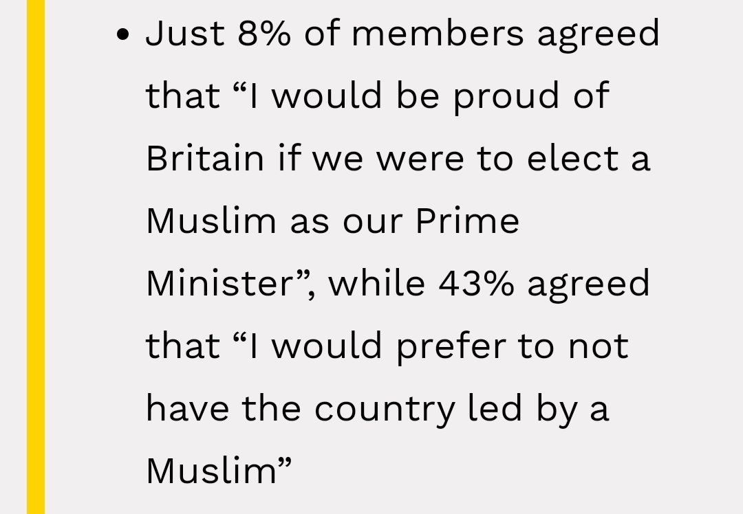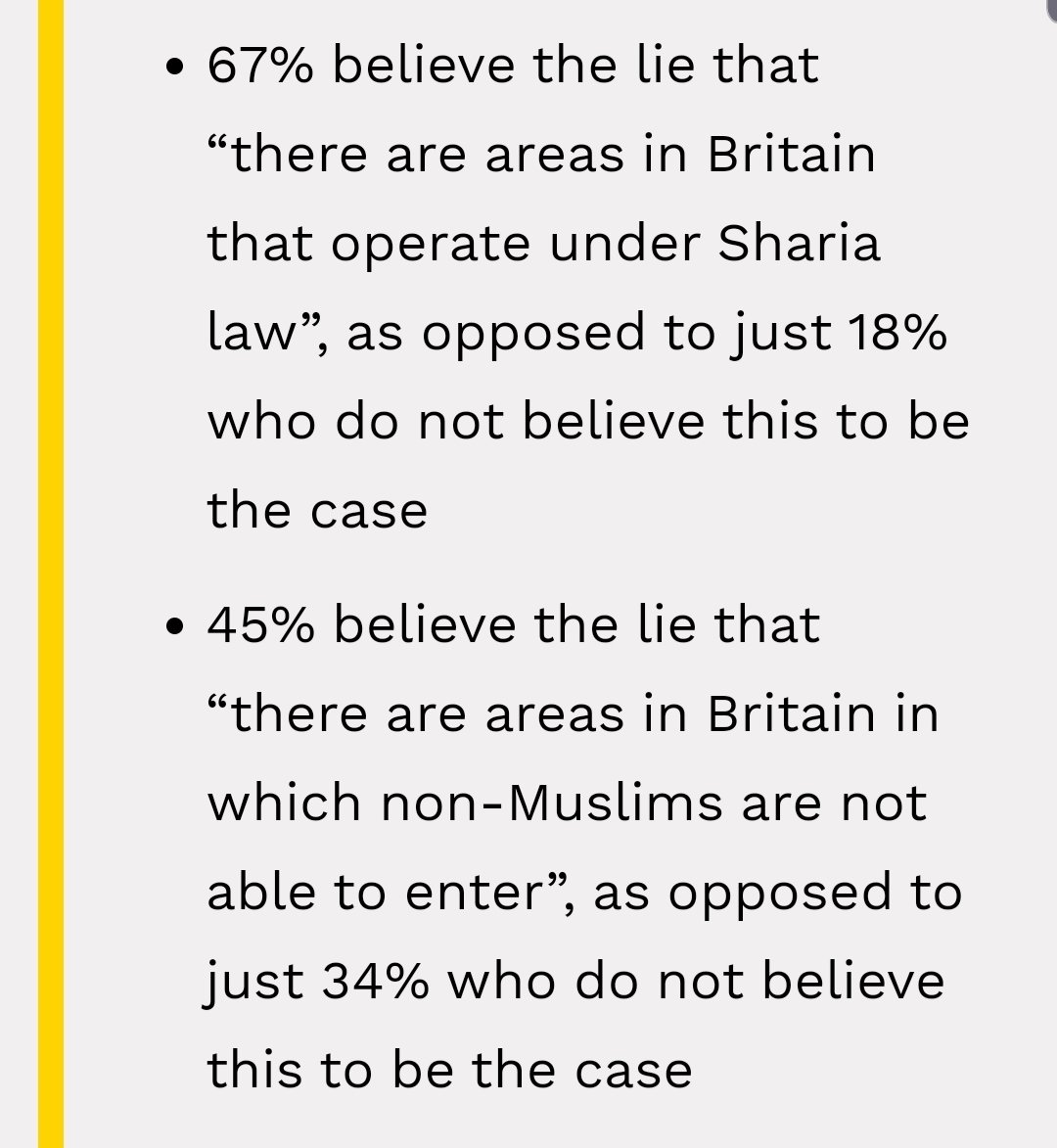 - 2/3 of Tory members believe the Islamophobic far right conspiracy that parts of UK are under Sharia law