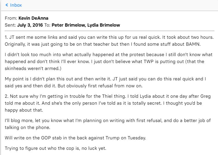 In 2016, #Palantir's #PeterThiel hosted a dinner with Kevin DeAnna, one of the US's most influential white nationalists - a man who has called for a white ethnostate.