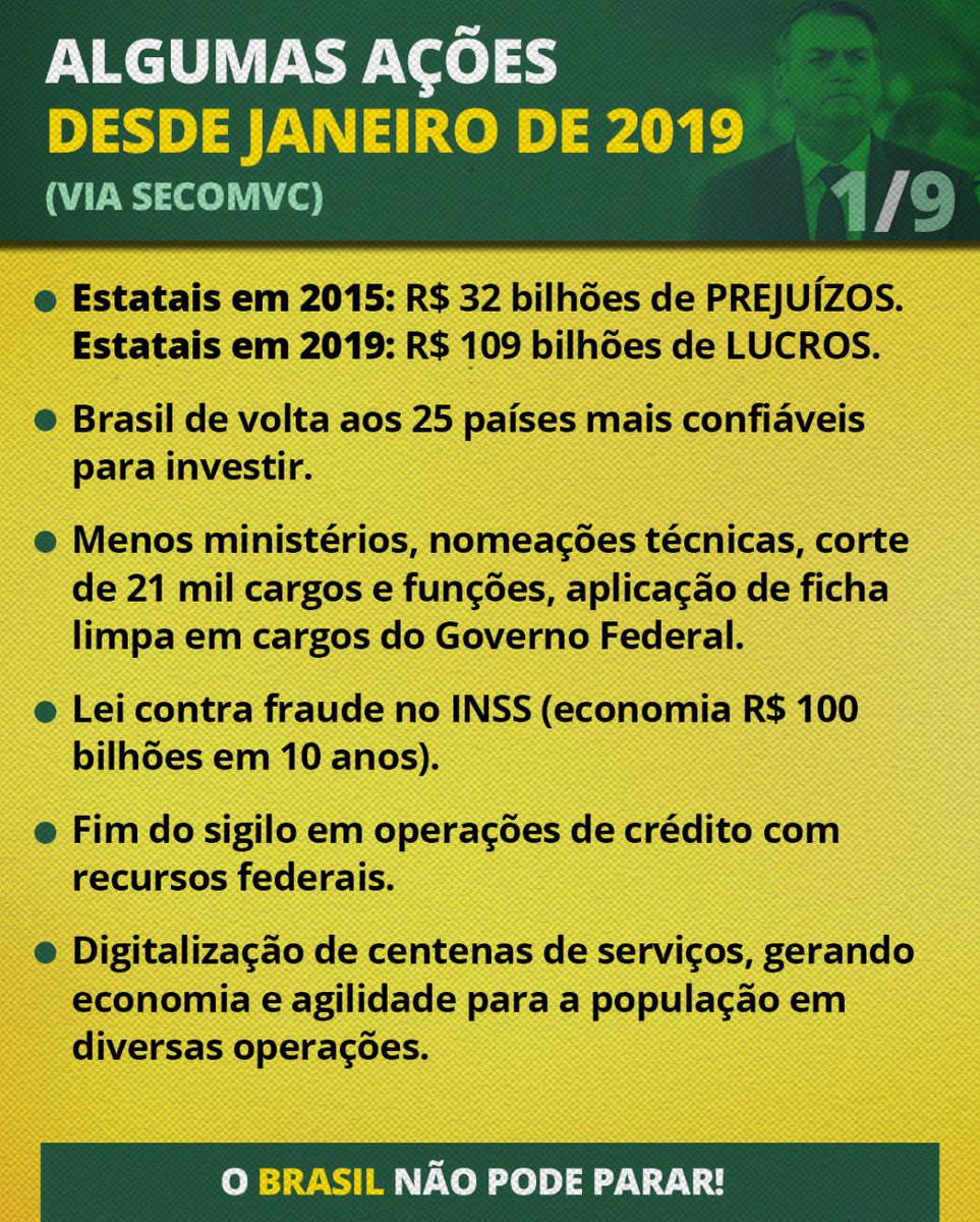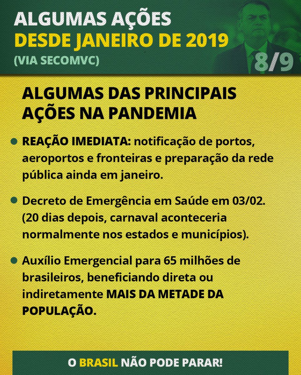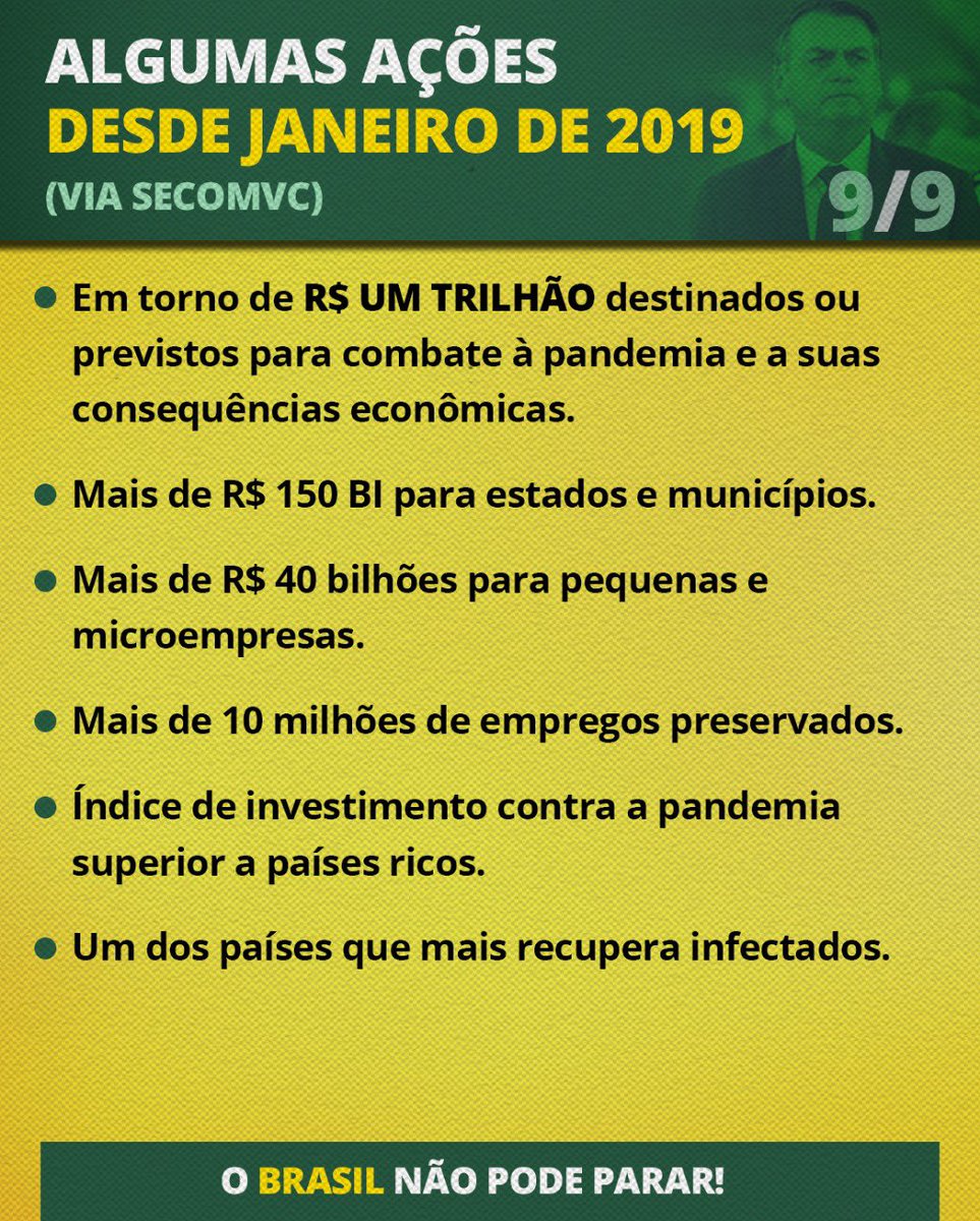 - A situação só não está pior pelas ações do @govbr que foi ao socorro das pequenas e médias empresas, arranjou recursos para estados e municípios e está pagando Auxílio Emergencial de R$ 600,00 para mais de 60 milhões de pessoas.