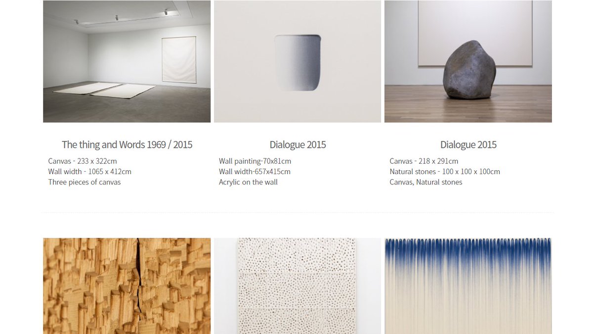 "Work of Space Lee Ufan painting-14 pieces sculpture- 7 pieces external sculpture- 3 pieces He had boundless passion on the Space. He designed the Space and had delicate installation work of each piece."