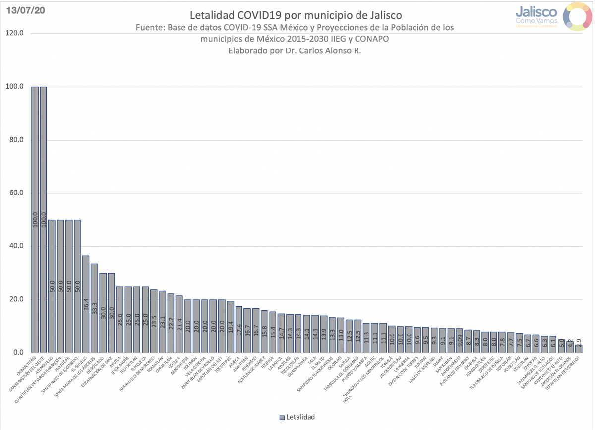 Por último, incidencia, defunciones y letalidad por municipio en el estado de Jalisco. #COVIDー19mx#covid19mx#COVID19