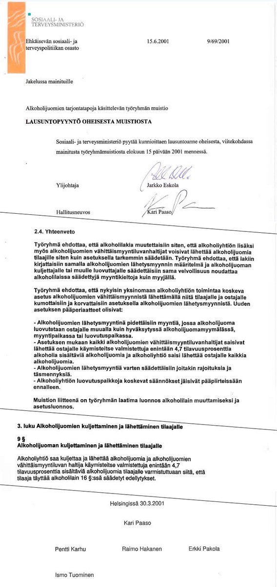 Osaako @PSillanaukee sanoa, miksi @STM_Uutiset’n esitys ”politisoituneesta ja karnevalisoituneesta” #etämyynti’stä ei mainitse tätä STM:n vuoden 2001 työryhmäraporttia? Tai miksi ei ole mainittu Ruotsin osalta, että etämyynti on laissa sallittu Rosengren-tuomion jäljiltä?