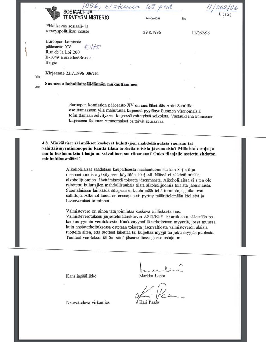Se osa @STM_Uutiset’n esityksessä on totta, että vuonna 1993 neuvoteltiin @Alko_Oy’n asemasta komission kanssa. Tuontimonopoli purettiin EU-liittymissopimuksen liitteen mukaisesti.