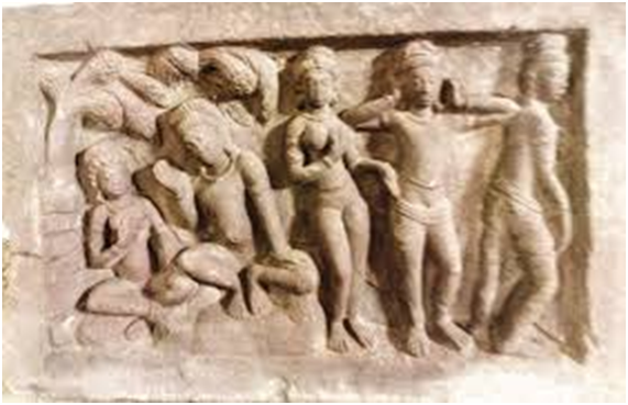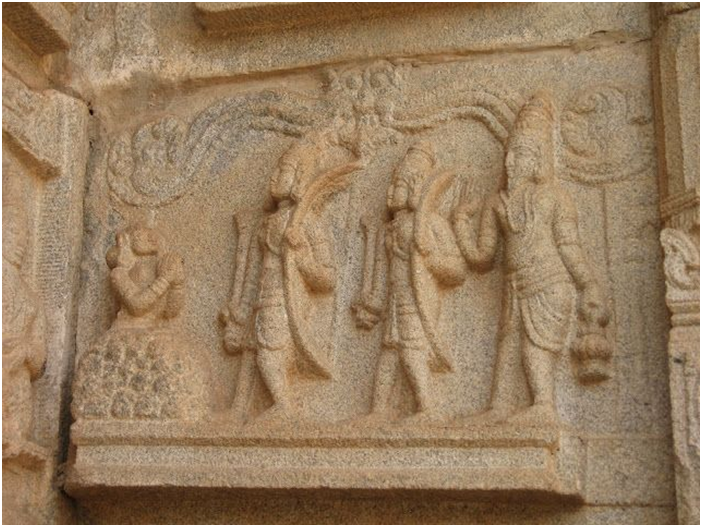 Ahalya getrid of curse when Rama entered the Ashram – Sculpture at Hampi; Karnataka.