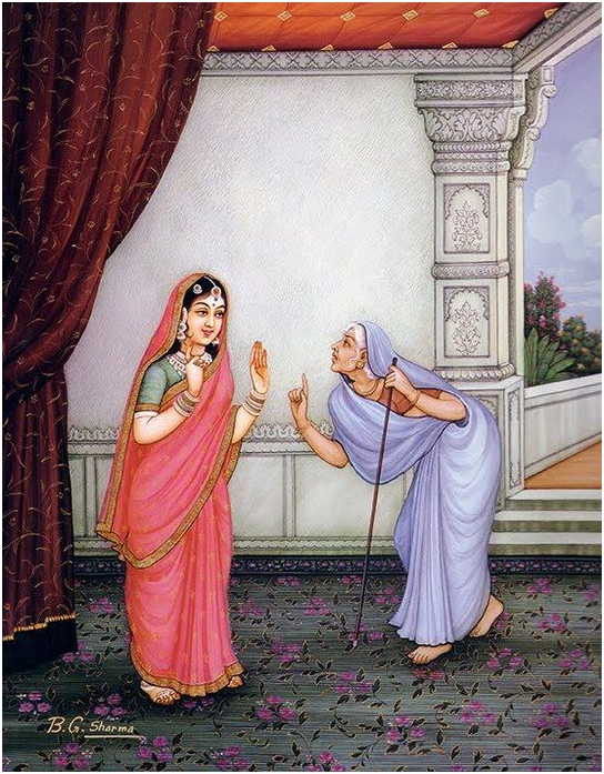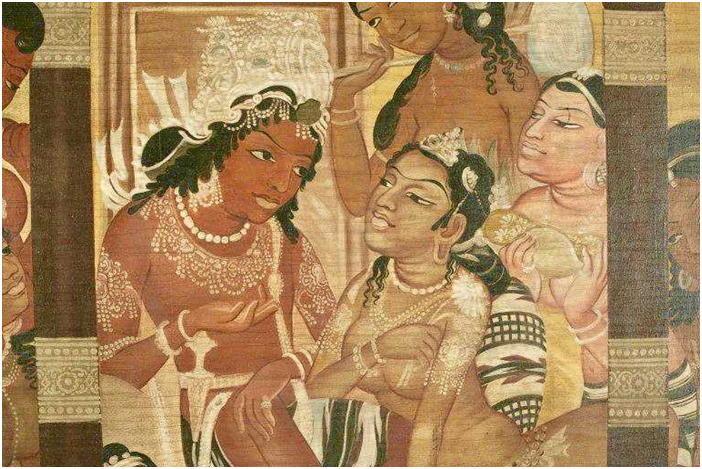 Sunaina advicing daughter Sita on her responsibilities – Ajanta paintings