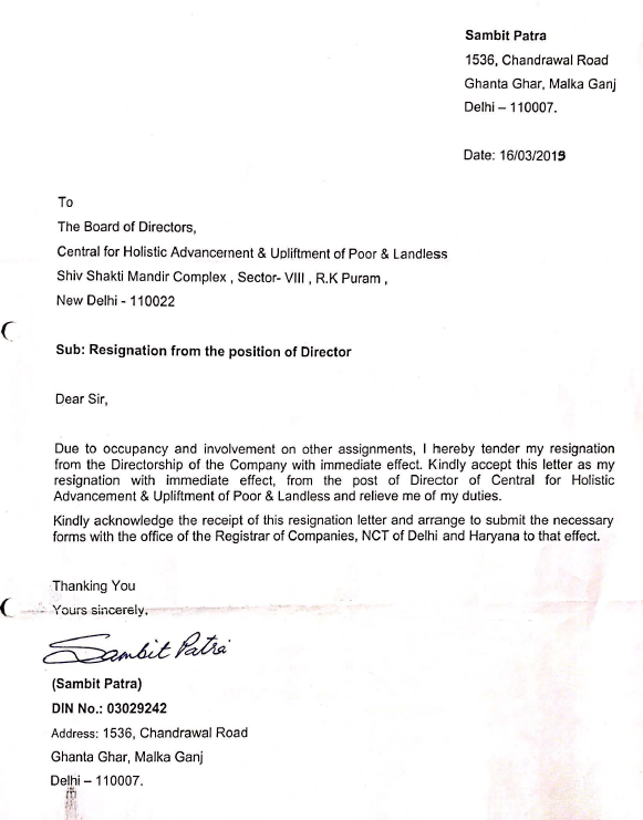 In 2010, Sambit Patra set up a company called Centre For Holistic Advancement And Upliftment Of Poor & Landless (CHAUPAL).