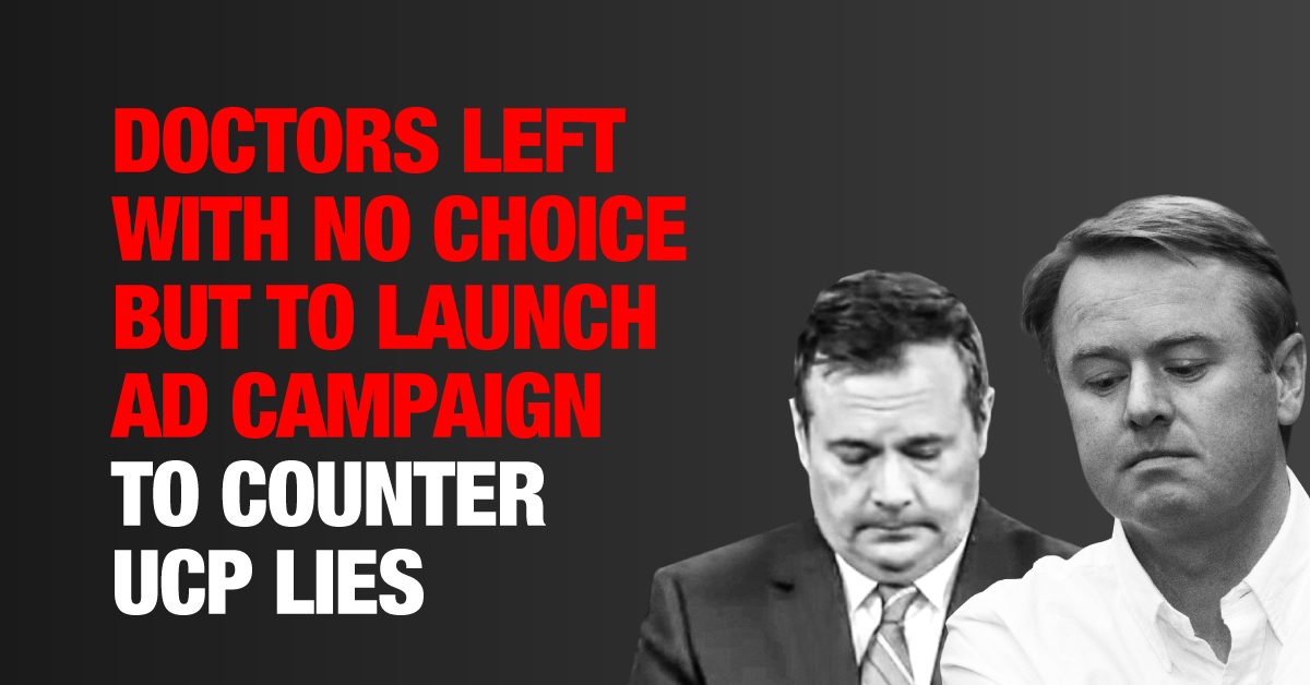 The NDP is backing Alberta doctors as the AMA launch full-page newspaper advertisements to correct a long record of UCP lies designed to discredit their profession and clear a path to American-style, profit-centred health care.