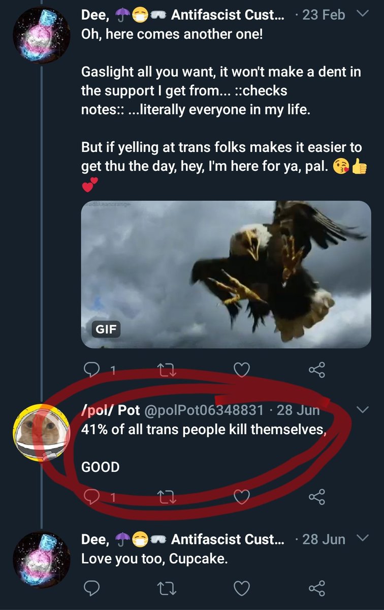She switched to their side cuz some trans folks are mean.