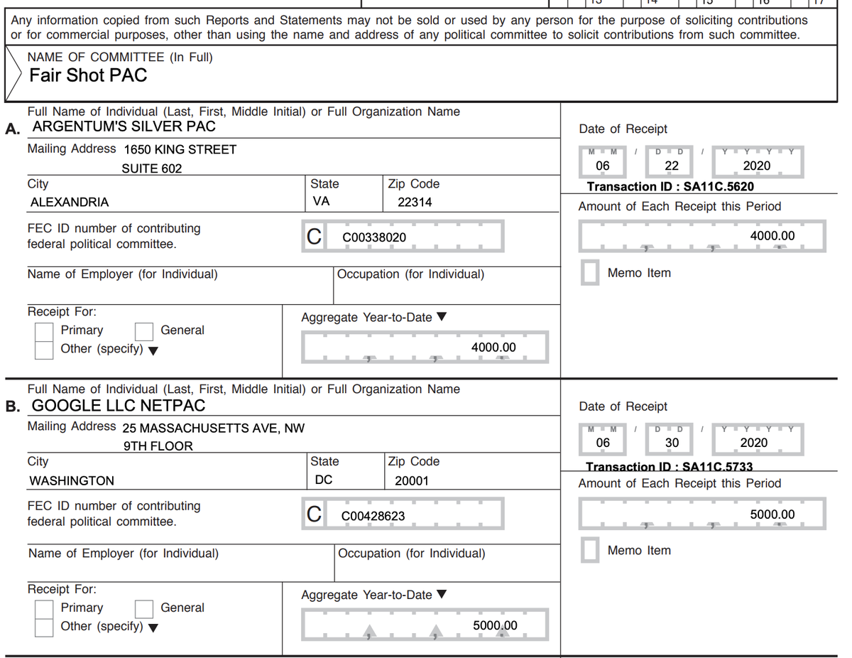 Looks like Google made a $5,000 donation to an entity called "POINT PAC" on June 30. Hmm, I've never heard of that one, let's see where their money goes... [reposted with correct PAC name]