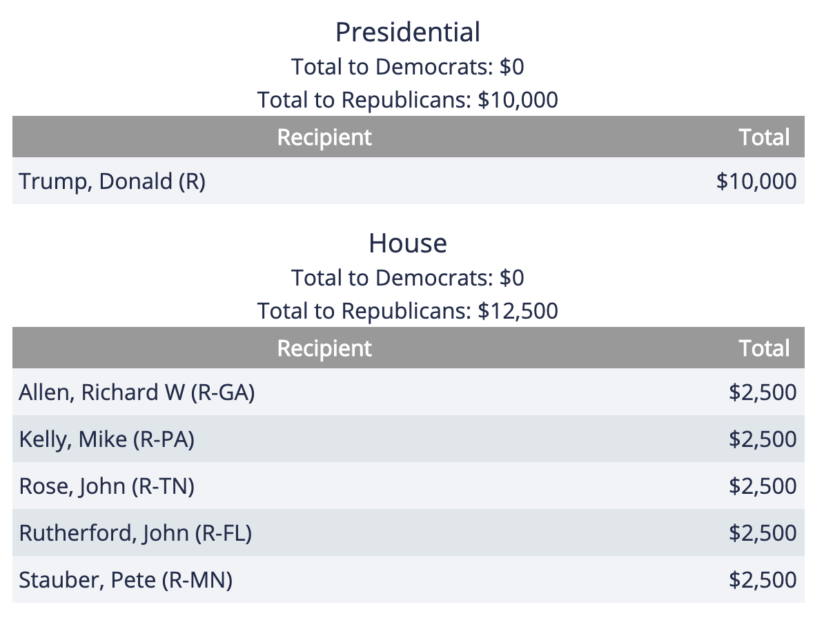 Some of these PACs have a huge fan-out and give to everyone, but that's not the case here. POINT PAC has made $27,500 in contributions in 2020. $10,000 of that went to the Trump campaign. Google donated $5,000 to POINT PAC. It really is a (legal) pass-through donation to Trump