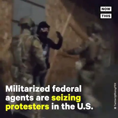 Alarming footage shows militarized federal agents pulling a Portland protester off the street and loading them into an unmarked minivan