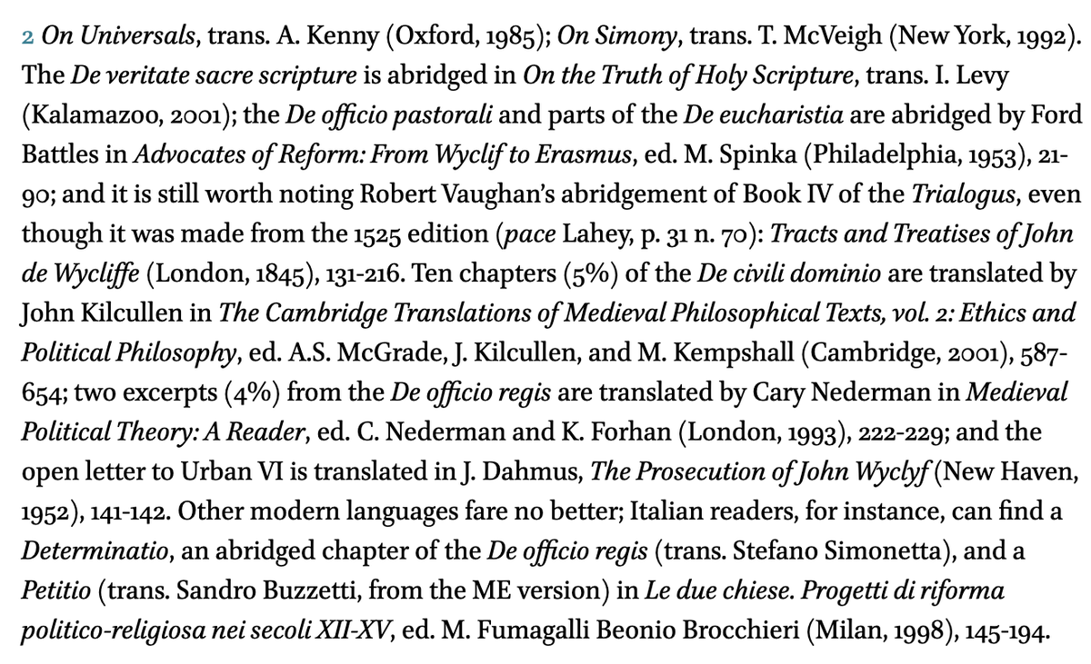 @natfriedman A lot of Wyclif's stuff remains untranslated into English. Here's a fn from an article from 2020 that attempts to catalogue all of the English translations, as compared to his Latin bibliography: