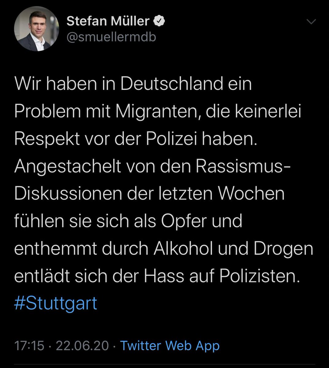 Wissenschaftliche Studien (!) zu Polizeigewalt und Racial Profiling durch die Polizei bezeichnet Tschentscher als "Behauptung", ohne zu sagen, an welchen Stellen er den Erkenntnissen inhaltlich widersprechen würde. Ihm gefällt einfach das Ergebnis nicht.