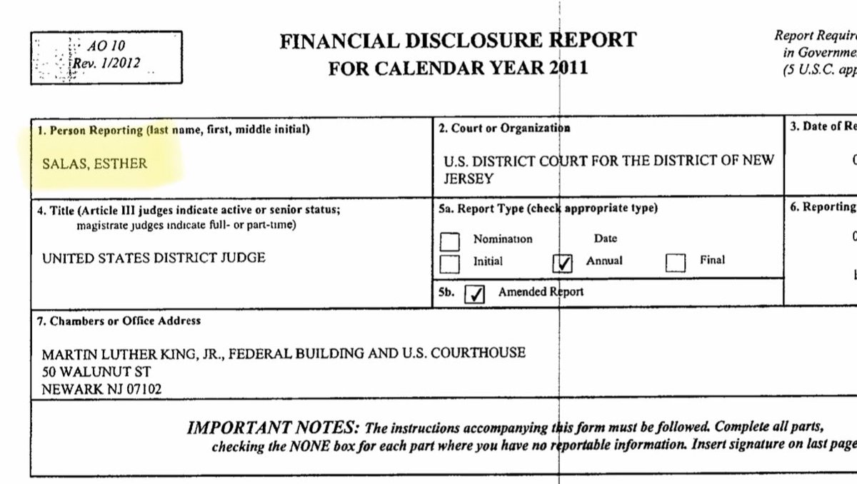 Salas was the former president of the Hispanic Bar Association of New Jersey. She had both undergraduate and law degrees from Rutgers University.