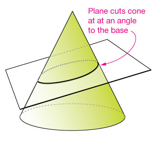 مطابق این شکل، مقاطع مخروطی حاصل تقاطع مخروط و یک صفحه مسطحند. اگر سطح مقطع: