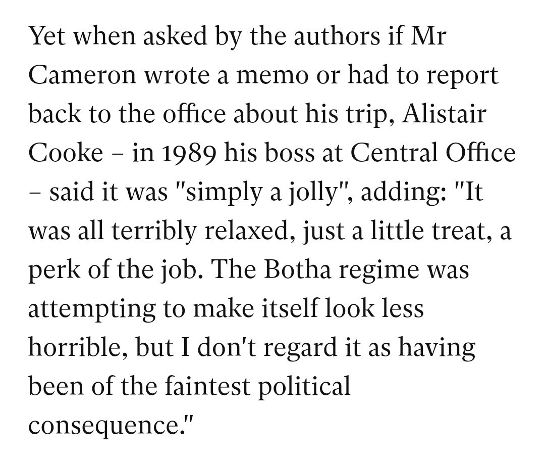 Laud, speechwriter to Maggie, was a Monday Club member with strong links to South Africa's white supremacists. It was Golly as he called himself who arranged David Cameron's expenses-paid freebie to ZA, played down by Alistair Cooke as a 'simply a jolly'. truepublica.org.uk/contributor-ne…