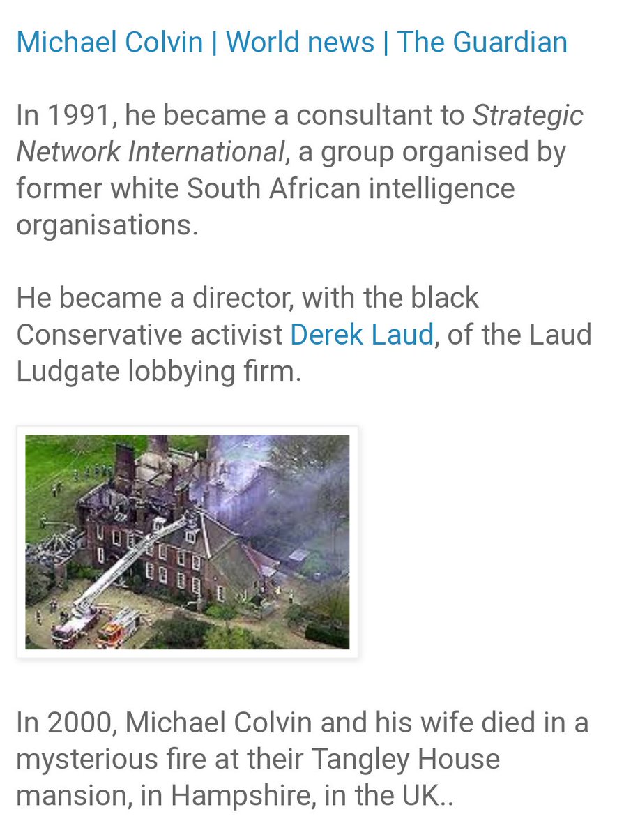 Laud was closely affiliated to Strategy Network International, a pro-Namibia lobby, linking him to people like Michael Colvin, who Laud was the last person to see before his home burned, and Stephen Govier covered in the next post. dailymotion.com/video/xjs92w powerbase.info/index.php/Stra…