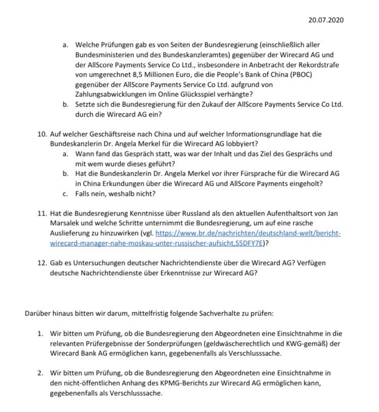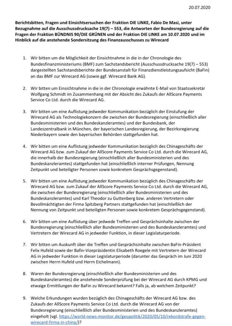 Außerdem unser Fragenkatalog zur Sondersitzung in dem wir auch nach der Kommunikation zwischen Bundeskanzleramt und Finanzministerium fragten. Als PDF auch hier fabio-de-masi.de/de/topic/110.w…#Wirecard