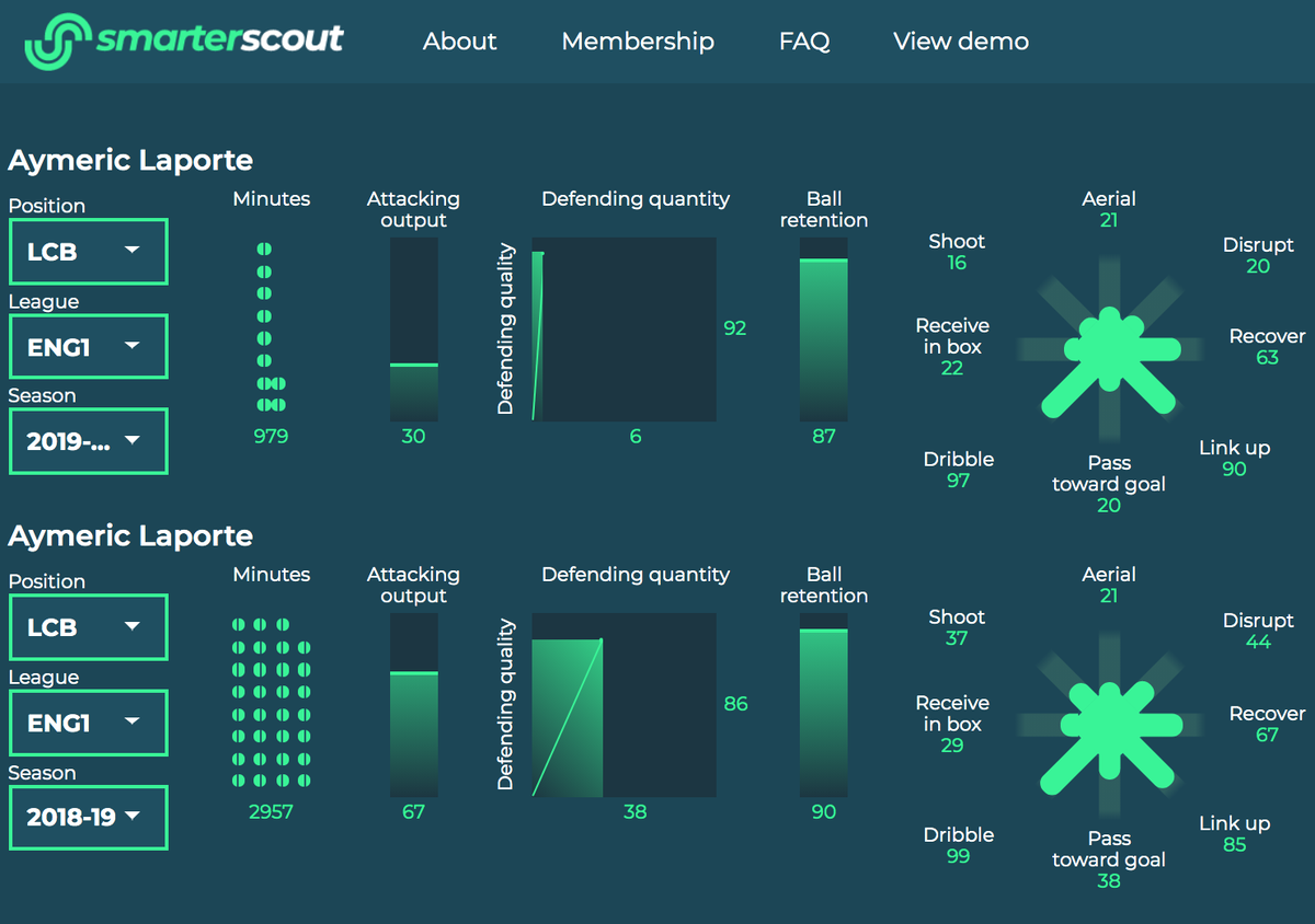 P.S. To be fair, Laporte was much stronger on both sides of the ball in 2018-19, before his injury (see below). Will he get back to his best next season? Aké may soon be there partly in case he doesn't.