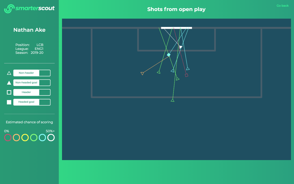 Aké can get into the box both in open play and on dead balls, and he's a mean finisher. When he gets forward, though, he's typically looking for a short pass. Good fit for Man City, good competition for Laporte. Great talent in duels, can still improve his overall game.