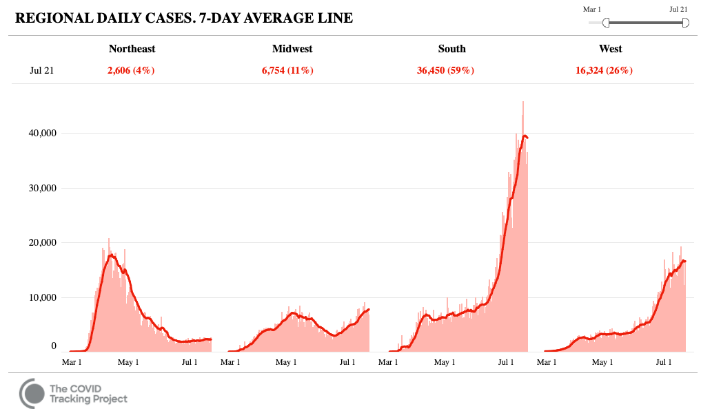 But denial has consequences. Sunbelt states stayed open for infection long past the point where looming disaster was apparent; even now, key states aren't requiring masks or closing gyms 5/