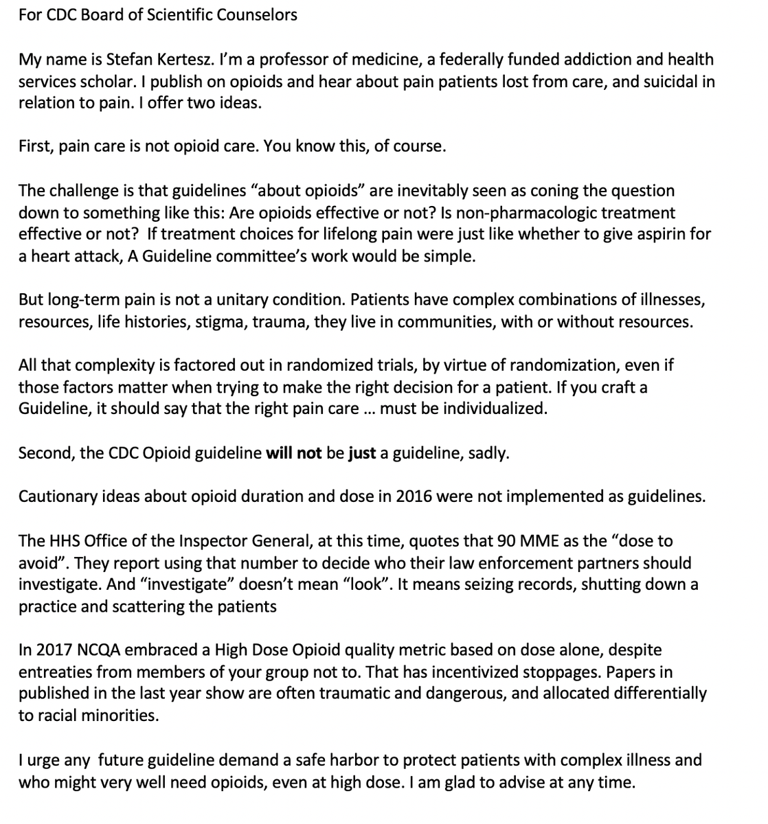 "Why has the CDC not focused on the impact on individual patients since the Guidelines have been implemented?"