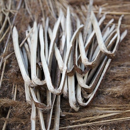 Not many people supply hazel spars these days. You need thousands of these to thatch a traditional English long straw roof (long straw is a by-product of trad. wheat farming). Hazel is harvested every 7 years and is completely sustainable and organic. The Osgoods make good spars.