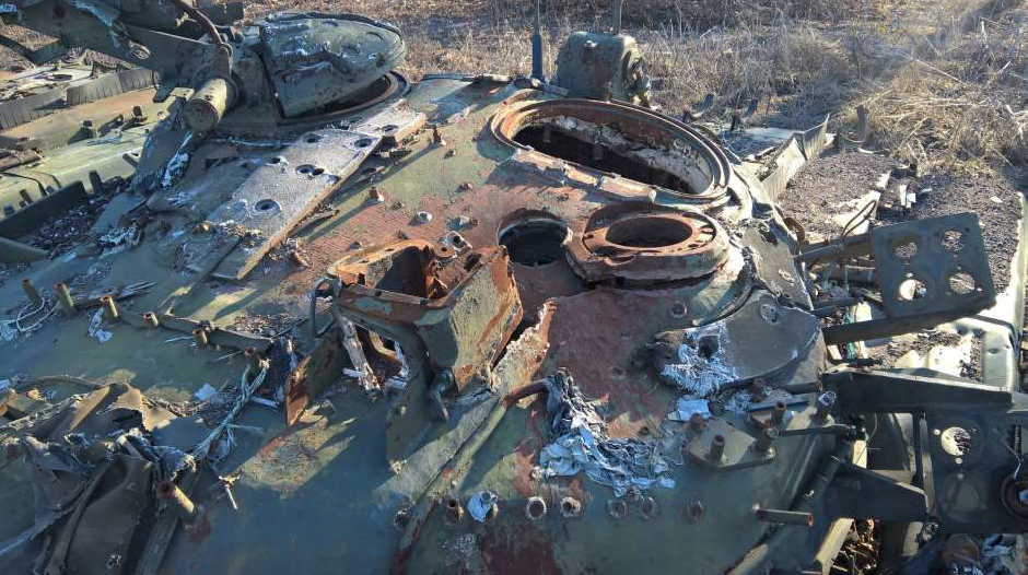 However, this image shows the effects of a 125 HE-FRAG round on a T-64. The Ukrainian personnel also cited UAVs carrying hand grenades with shaped charges as threats, pointing to their use in Iraq and Ukraine.